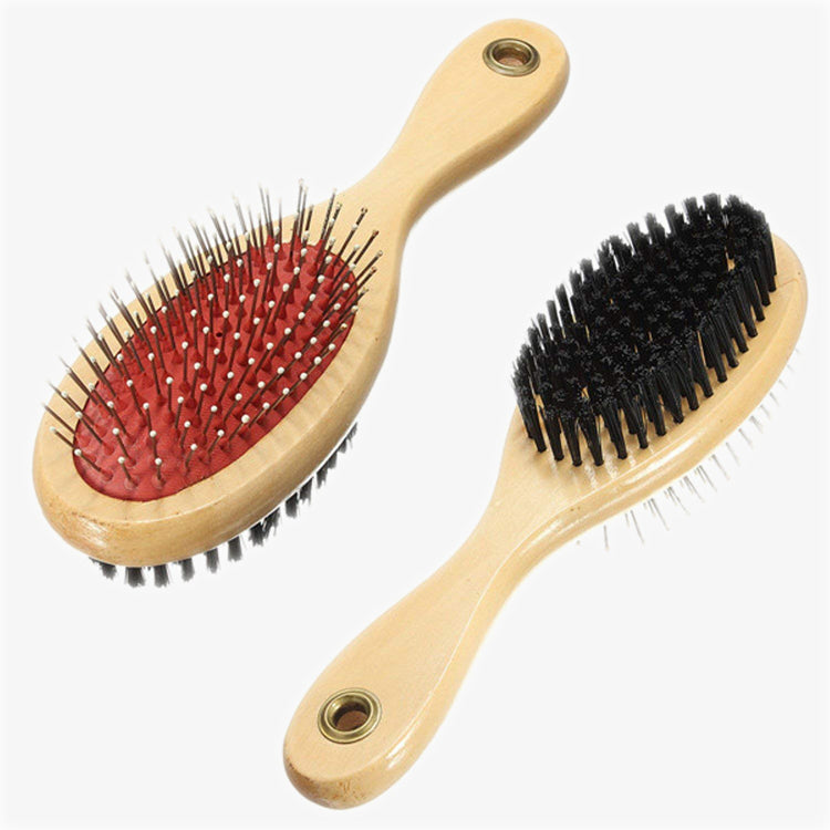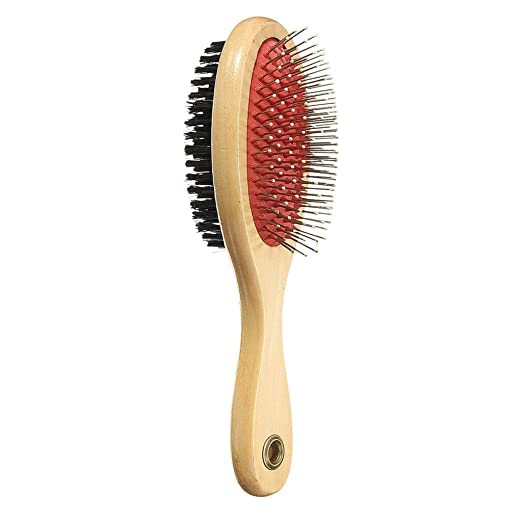 - The bristle brush side helps knock off loose hair or dirt and the pin brush side helps with finishing and combing to give a healthy shiny coat. It also controls hair shedding.