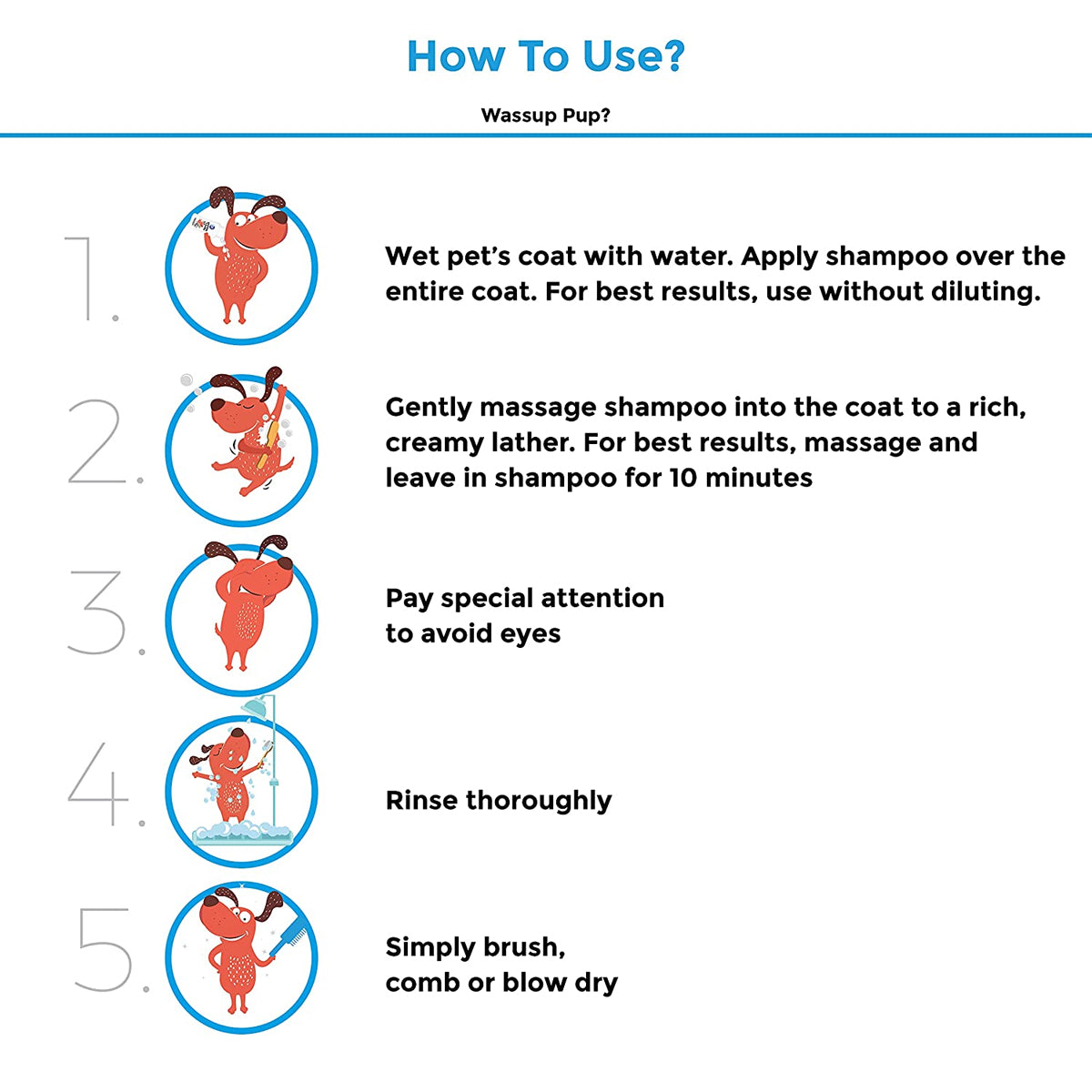 - USAGE - Gently massage shampoo into the coat to form a rich creamy lather. Pay special attention to avoid eyes. Rinse thoroughly and use regularly to maintain a healthy coat.