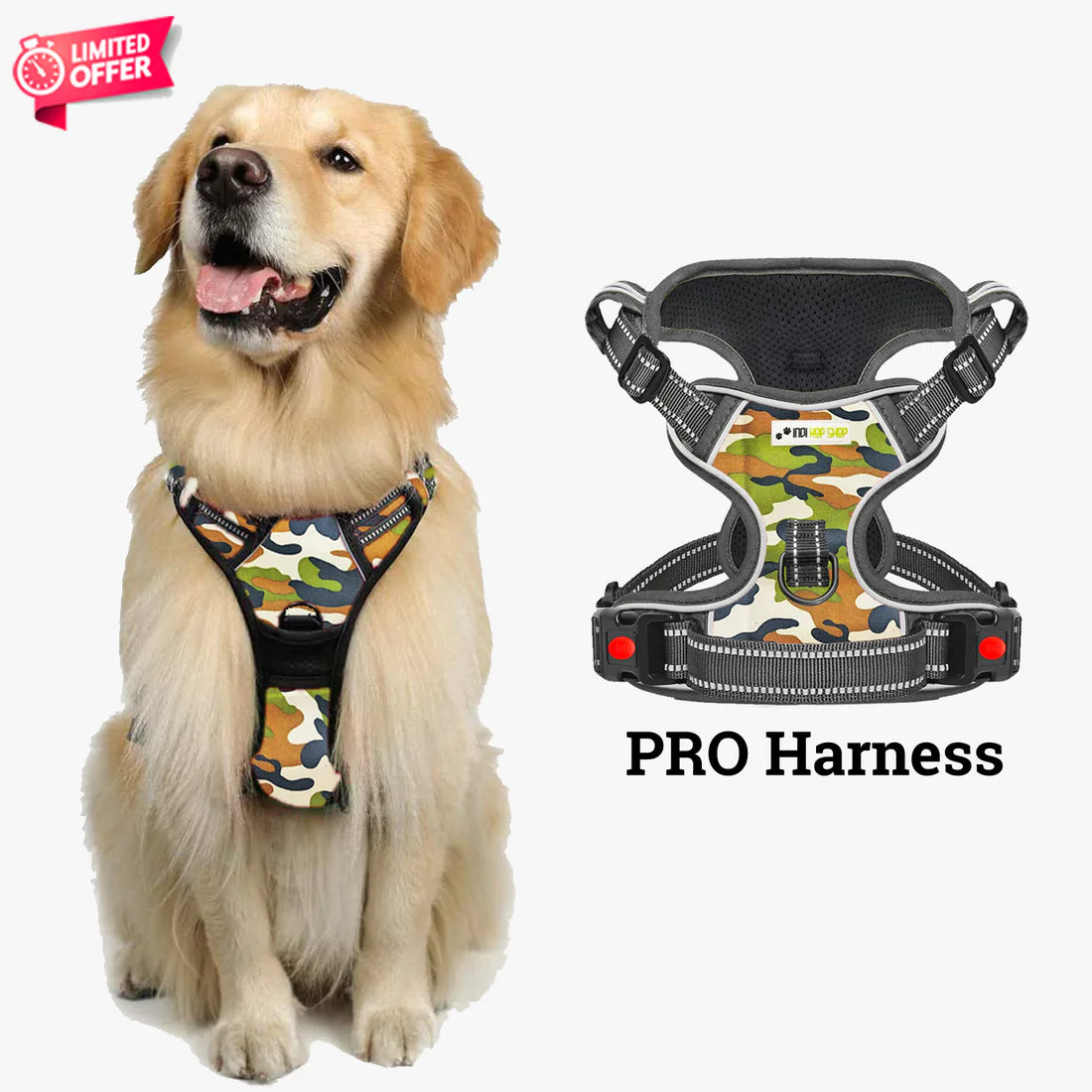 Indihopshop PRO harness is made with best in class features which makes harness sturdy, easy to use and safe for your dog.