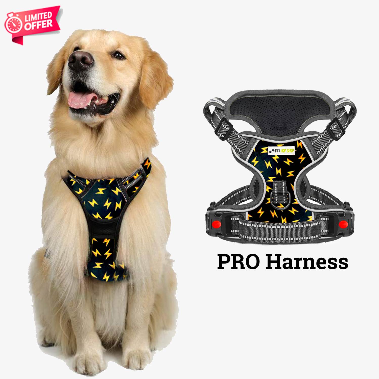 Indihopshop PRO harness is made with best in class features which makes harness sturdy, easy to use and safe for your dog.
